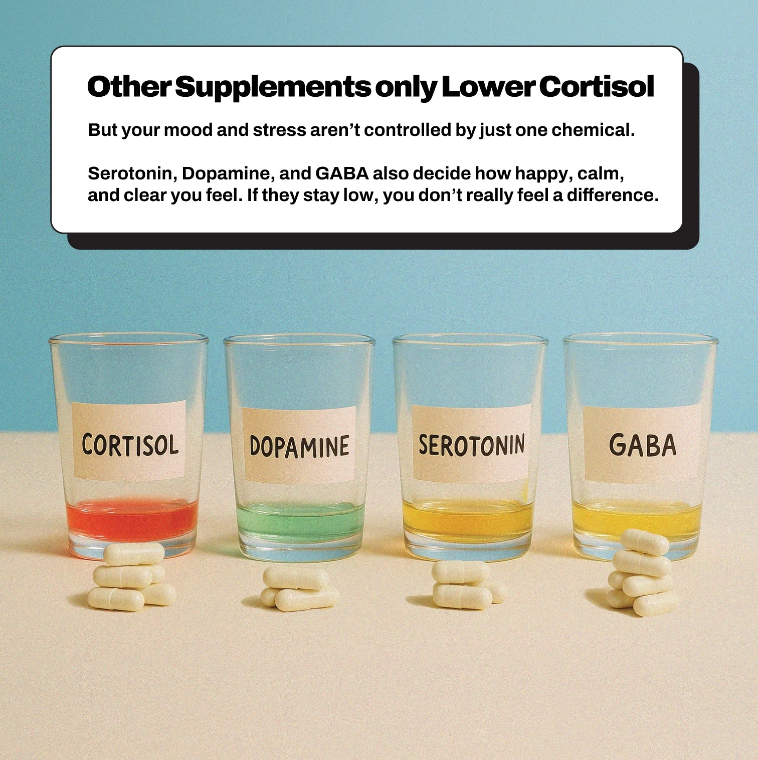 Clinically validated decrease in anxiety scores - without the drowsiness or brain fog of typical calming supplements.